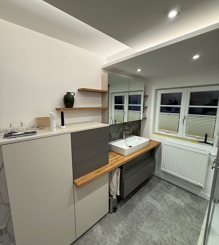 Entstanden ist ein modernes, harmonisches Bad, das Funktionalität und Wohlfühlatmosphäre perfekt vereint.